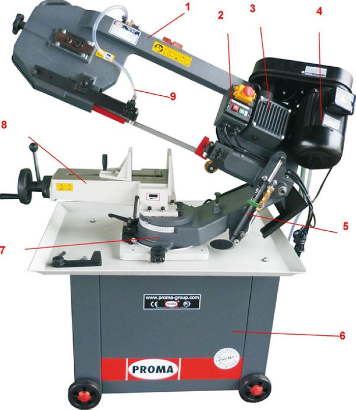 Ленточная пила по металлу PROMA PPK-200U - предназначен для резки материалов различной плотности: от алюминия, алюминиевых сплавов и металлов без содержания железа, до высокопрочной стали. Пила предназначена для резки деталей, максимальный размер которых составляет 205 х 215мм.