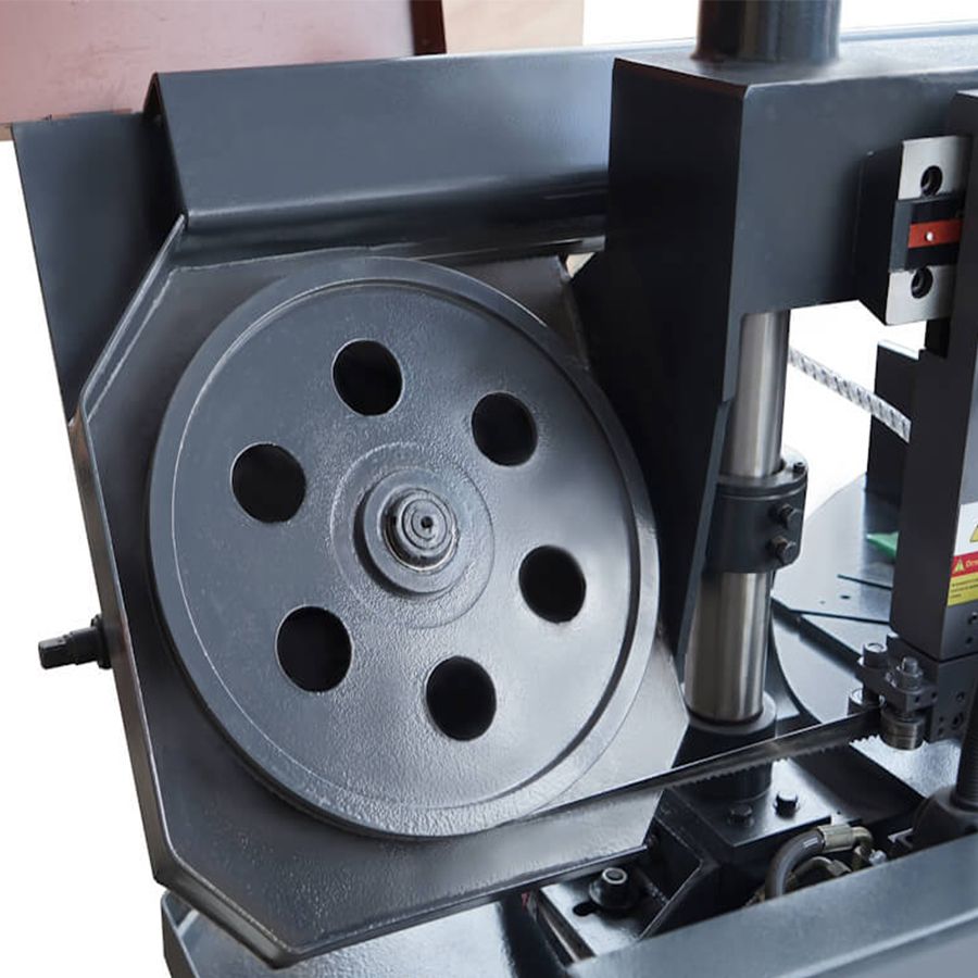 - Блок натяжения полотна находится с левой стороны станка, блок позволяет контролировать натяжение полотна и тем самым получать стабильный рез и продлить срок службы полотна.
