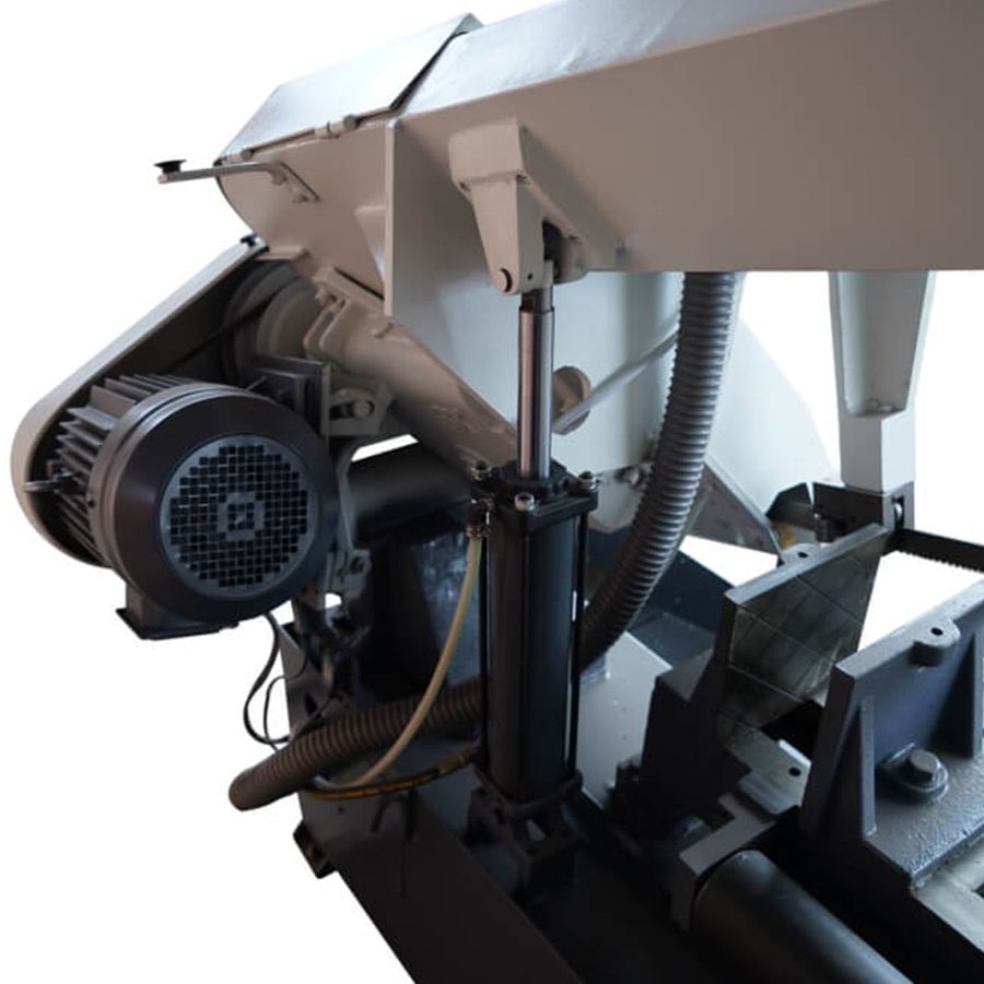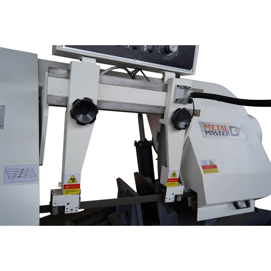 Metal Master BSM-350 SAF – это полуавтоматический ленточнопильный станок маятникового типа. Он предназначен для эффективного и быстрого распила стальных, чугуных и цветных металлов, а также их сплавов и других материалов с целиковым, полым и профильным сечением. На верхней панели пульта расположены механические кнопки управления станком. С помощью пульта управления осуществляются: запуск гидравлического насоса, поджим гидравлических тисков, переключение скоростей опускания пильной рамы, запуск вращения ленточного полотна. Также, на пульте оператора расположена кнопка аварийного выключения.Специальная кордщетка для съема стружки улучшает условия работы полотна и продляет срок его службы. Боковой упор позволяет быстро выставить заготовку на нужный размер и получать детали с высокой степенью повторяемости. Регулировка скорости вращения полотна осуществляется с помощью перекидывания ремней в блоке ременных шкивов. Станок имеет 4 скорости вращения полотна: 20/33/47/68 м/мин. Станок оснащён мощным и надежным двигателем, мощностью 3 кВт. Глубина опускания пильной рамы регулируется с помощью концевика. В стандартную комплектацию входит станочный светильник местного освещения. Станок так же имеет вспомогательный стол и ролик подачи перед тисками, которые помогают распиливать длинные и массивные заготовки.