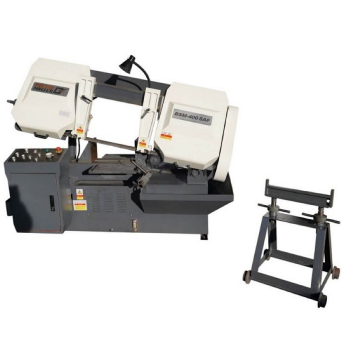 Полуавтоматический ленточнопильный станок MetalMaster BSM-400 SAF – представляемая модель дает возможность выполнять все необходимые операции в полуавтоматическом режиме, таких как раскрой металлических заготовок в условиях серийного производства от которых зависит надёжность и функциональности применяемого оборудования. Линейная пила BSM-400 SAF - это ваше оптимальное решение для нарезки стальных, чугунных и цветных металлов, а также их сплавов. Таким образом, покупая полуавтоматический ленточнопильный станок (ленточную пилу) Metal Master BSM-400 SAF на вашем производстве всегда будет качественная продукция. Также помимо кругляка вы сможете пилить и заготовки с целиковым, полым или профильным сечением. Производитель дает гарантию на оборудование на 1 год с последующем обслуживанием. Были произведены все необходимые тесты в различных режимах работы перед передачей станка в продажу, что полностью исключает вероятность приобретения бракованного оборудования.