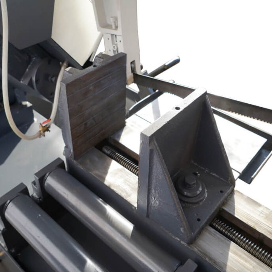 - Станок так же имеет вспомогательный стол и ролик подачи перед тисками, которые помогают распиливать длинные и массивные заготовки.