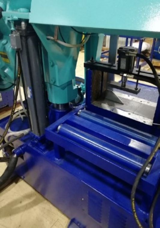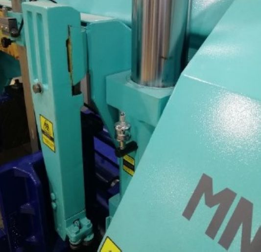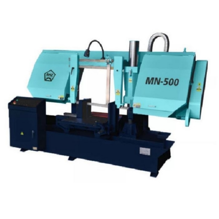 Ленточнопильный полуавтоматический станок AMZ колонного типа модели MN-500 - универсальный ленточнопильный полуавтоматический станок колонного типа модели MN-500 предназначен для эффективной резки под прямым углом заготовок сплошного сечения диаметром до 500 мм из различных сталей и сплавов, а также для резки труб и профилей. Колонная конструкция позволяет применять как биметаллические быстрорежущие полотна, так и твердосплавные (для труднообрабатываемых материалов). Гидравлический зажим заготовки. Гидравлическое управление скоростью подачи полотна.