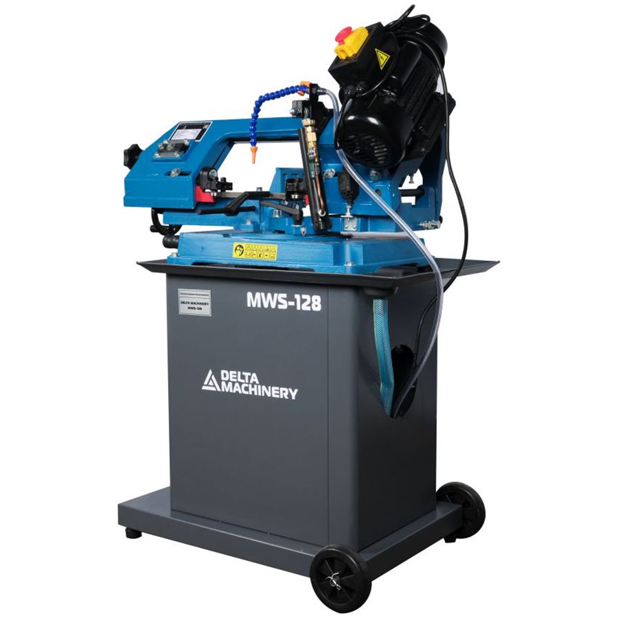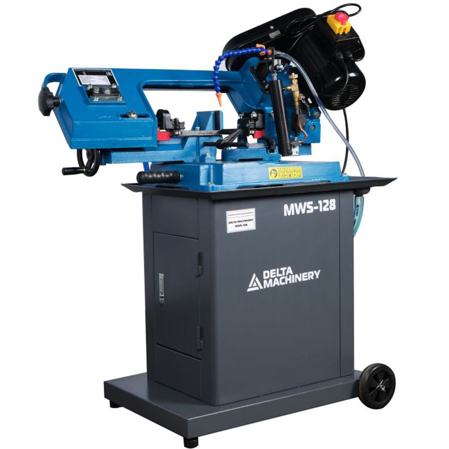 Ленточнопильный станок DELTAMACHINERY MWS-128 (380В) - предназначен для резки заготовок из металлов: цветных, никелевых, титановых, а также высоколегированных и конструкционных сталей. Конструктивное устройство станка, классическое для данного типа оборудования: в качестве базы используется массивная станина, а в качестве режущего модуля – пильная рама. Непосредственно процесс резки осуществляется пильным полотном (ленточная пила), которая сварена в кольцо и установлена на пильной раме, методом натяжения на шкивы. Пильная рама опускается под собственным весом
