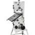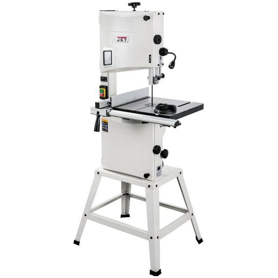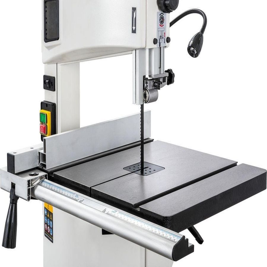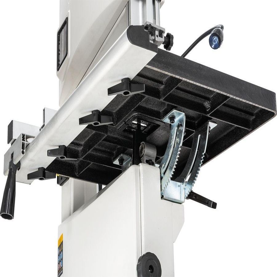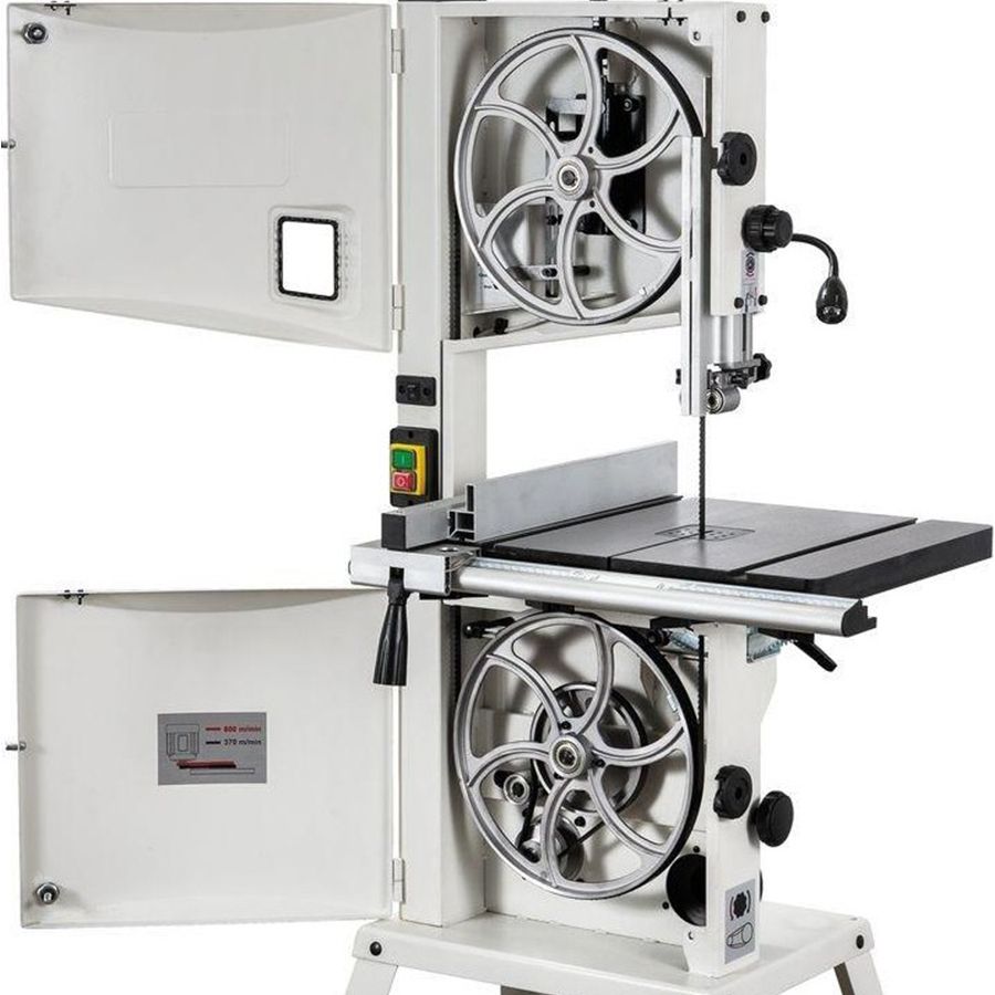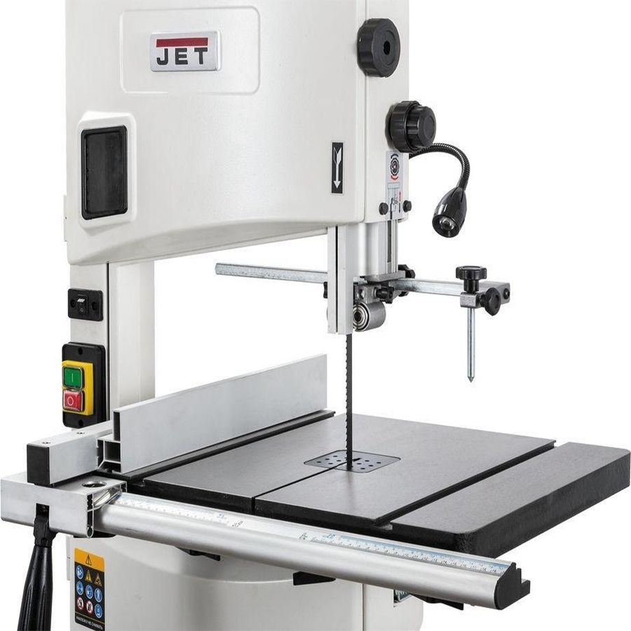 Ленточнопильный станок JET JWBS-12SL 230В – мощная ленточная пила для любительской работы с заготовками высотой до 170 мм. Модель оборудована большим чугунным столом и двухскоростной ременной передачей: высшая ступень обеспечивает высокую производительность по неплотным породам, низшая для твердой древесины, склонной к образованию прижогов. Параллельный упор двухпозиционный: имеет высокую сторону для надежной поддержки высоких заготовок при резе перпендикулярно столу и низкую, для плоских деталей и для пиления с наклоном. Фиксация упора эксцентриковая, на направляющем профиле миллиметровая разметка, на корпусе увеличительное стекло с риской. В комплект поставки входят и другие вспомогательные приспособления: скользящий вдоль Т-образного паза упор для угловых резов и регулируемый центр для радиусного пиления. Он представляет собой выдвижную штангу с центрирующим штифтом на конце, закрепленную на регулируемой по высоте планке. На этой же планке смонтированы и роликовые трехопорные направляющие полотна. Данная модель имеет максимальное для своего класса оснащение и, кроме привычных «обязательных» функций и настроек, у нее есть и все вспомогательные. Среди них рычаг для быстрого ослабления и натяжения полотна, позволяющий одним движением переводить станок из состояния хранения в рабочее. Светодиодная подсветка рабочей области с гибким штативом. Патрубок аспирации со ступенчатым подключением шланга диаметром 50, 75 или 100 мм. Опорная подставка, которая может быть снята в случае настольного размещения.
