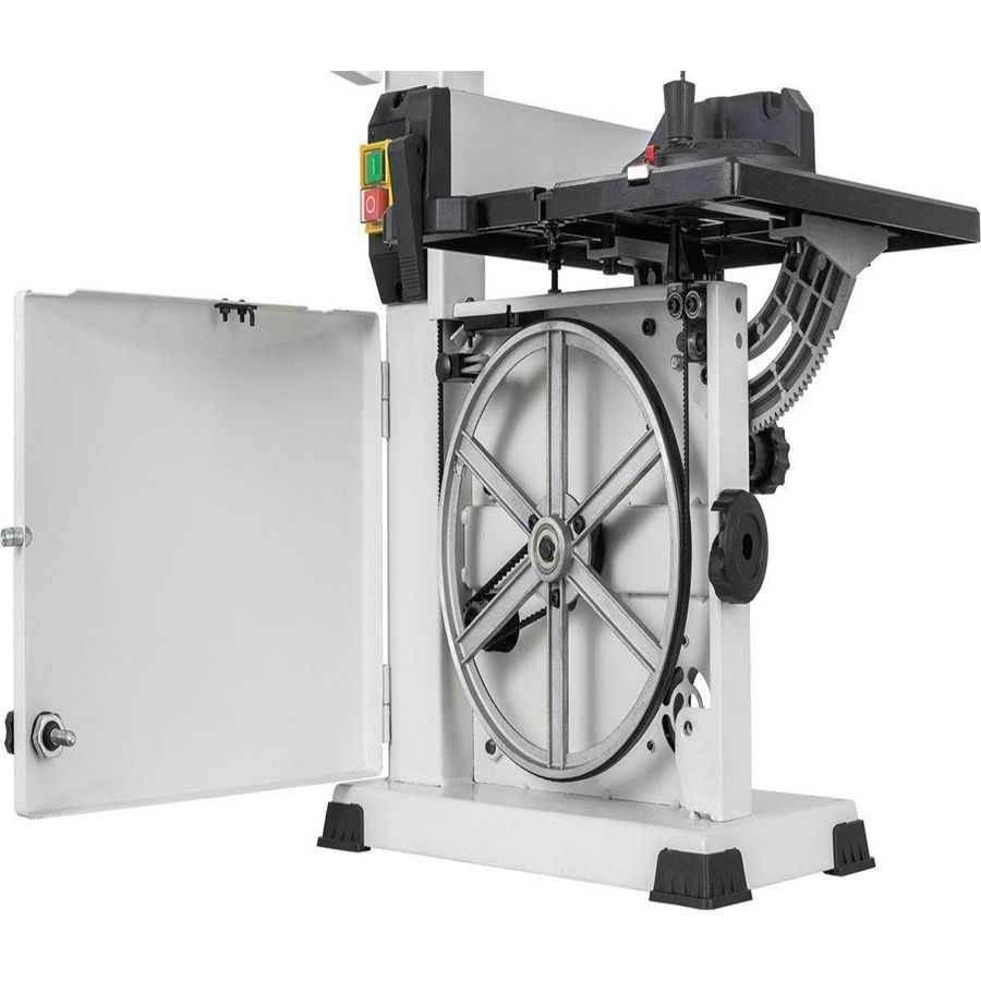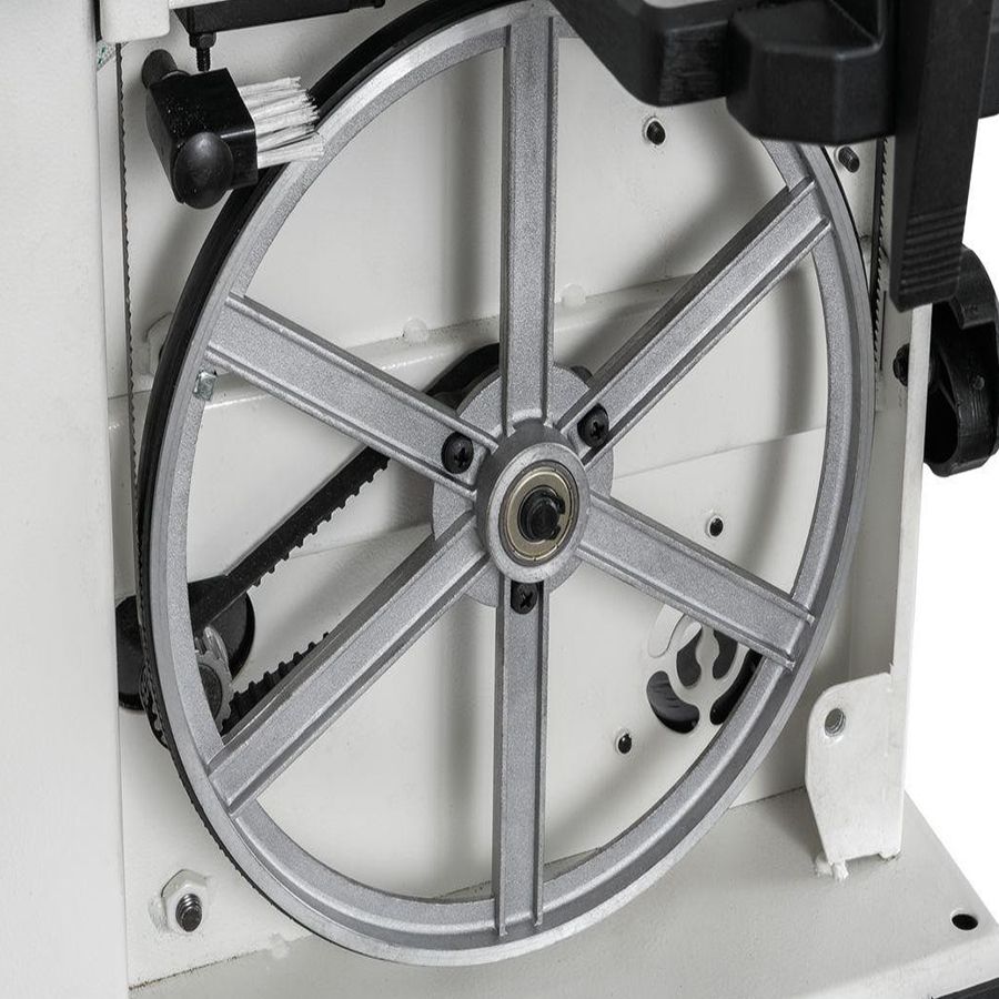 Ленточнопильный станок JET JWBS-9SL 230В – настольный ленточнопильный станок для частного любительского применения. Позволяет распускать заготовки толщиной до 90 и шириной до 225 мм. Укомплектован трехроликовыми направляющими с шарикоподшипниками, обеспечивающими легкое движение ленты, минимальный износ и простоту регулировки. Ведущий шкив приводится во вращение через зубчато-ременную передачу, а не установлен непосредственно на валу двигателя, как часто делают для упрощения конструкции. Такая разнесенная схема дает более плавное без биений вращение и лучшую ремонтопригодность.