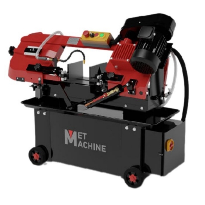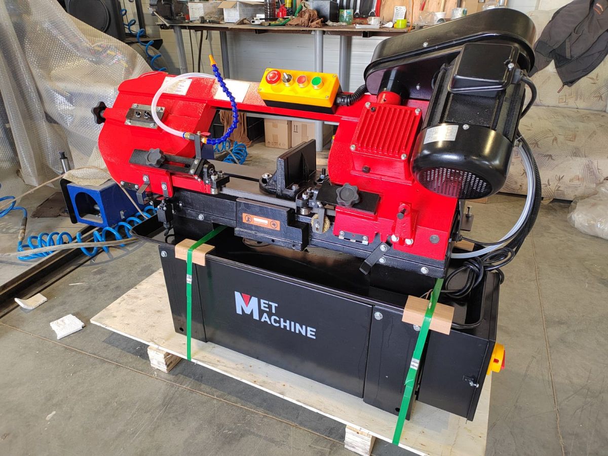 Ленточнопильный станок MetMachine LS1118 маятникового типа с поворотными тисками оснащен асинхронным двигателем и требует подключения питания на 380В. Обрабатывает металлические заготовки под углом 45°, 90°.