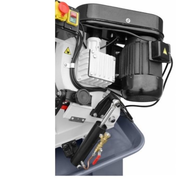 Станок оборудован гидроцилидром для опускания рамы, системой СОЖ для охлаждения зоны реза, колесиками для быстрого перемещение по рабочему пространству.