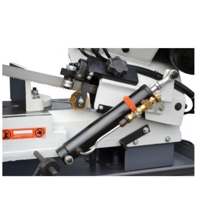 - Станок оборудован очищающими щётками, которые обеспечивают удаление стружки с двигающейся пильной ленты.