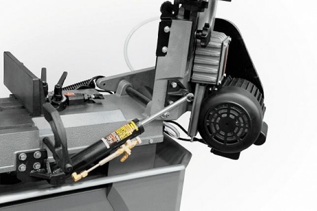 Ленточнопильный станок Jet HVBS-712 - является ленточнопильным станком, выполненным по американскому типу, с поворотными губками тисков. Станок оборудован системой гидроразгрузки, обеспечивающий легкое поднятие и опускание тяжелой, литой консоли. Наличие гидроцилиндра создает необходимое прижимное усилие пильной рамы на обрабатываемую заготовку. Поворот рамы осуществляется в соответствии с показаниями шкалы, в диапазоне 0-45 0.