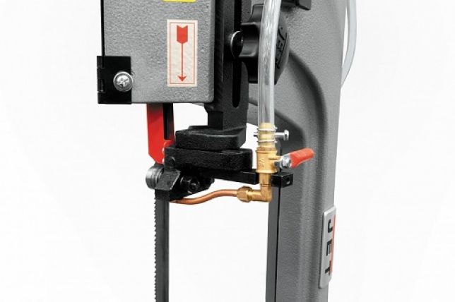 Консоль станка оборудована направляющими, позволяющими регулировать проход полотна и предотвращать уводку ленточного полотна в сторону. Наличие в конструкции подшипников обеспечивает позиционирование полотна относительно обрабатываемой заготовки, способствует повышению точности и качеству распила. Ленточнопильный станок оборудован системой подачи СОЖ, имеет удобную тумбу-подставку с колесами для быстрого перемещения.