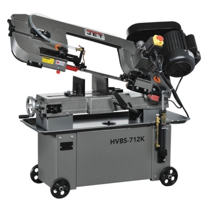 Ленточнопильный станок Jet HVBS-712K - является представителем линейки моделей американского типа. Станок используется для работы на производстве, для работы в промышленных условиях. Конструкция ленточнопильного станка позволяет осуществлять распил круглых металлических заготовок под прямым углом, максимальный диаметр которых составляет 175 мм, под углом в 45 0 - 110 мм. Смена позиции заготовок для определения угла распила, осуществляется путем переустановки губок механических тисков в необходимое положение. Угол распила определяется в соответствии с делениями шкалы. Тяжелая литая консоль оборудована механизмом гидроразгрузки, с помощью которого уменьшается нагрузка на оператора при поднятии и опускании пильной рамы. Сила прижима консоли и скорость подачи рамы регулируется с помощью гидроцилиндра. Модель HVBS-712K позволяет осуществлять распил заготовок в вертикальном положении.