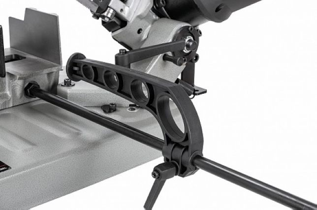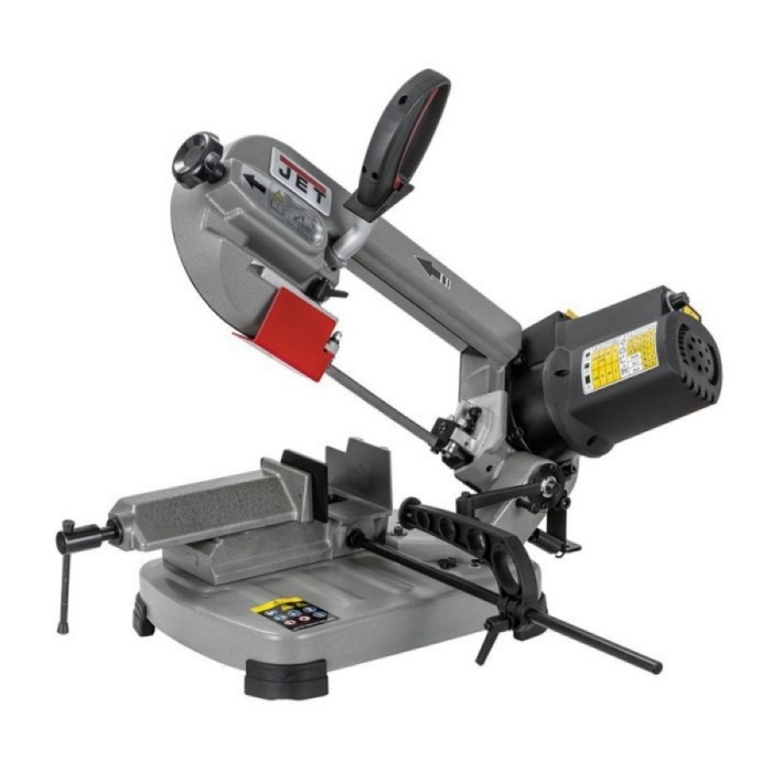 Ленточнопильный станок Jet J-349V - представляет собой ручной ленточнопильный станок, разработанный для мелкосерийного производства и индивидуального использования. Наличие тяжелой литой пильной рамы обеспечивает необходимый прижим в момент пиления. Конструкция станка позволяет вести обработку заготовок диаметром до 125 мм. Модель изготовлена по европейскому типу, с поворотной рамой. Наличие шкалы обеспечивает точную установку рамы под необходимым углом в диапазоне 0-60 0. Опускание рамы осуществляется непосредственно оператором. Обратное действие осуществляется вручную, имеющаяся пружина компенсирует подъемное усилие пильной рамы.