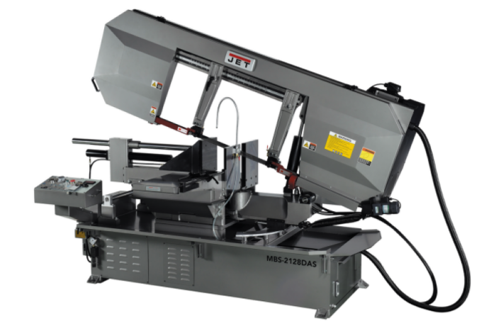 Ленточнопильный станок Jet MBS-2128DAS - представляет собой ленточнопильный станок, используемый для промышленной обработки заготовок большого диаметра, распила заготовок прямоугольного профиля. Станок изготовлен по европейскому типу, с поворотной рамой. Конструкция станка позволяет осуществлять поворот консоли вправо и влево на углы в диапазоне 0-60 0, в зависимости от технологического процесса. Максимально допустимый диаметр заготовок, обрабатываемых на станке под углом 90 0, составляет 530 мм. Под углами 45 0 на станке возможно пиление круглых заготовок диаметром – 480, 490 мм. Поворот консоли на 60 0 позволяет выполнять пиление металлических заготовок диаметром 335 мм. Оборудование позволяет выполнять весь цикл обработки в полуавтоматическом режиме.