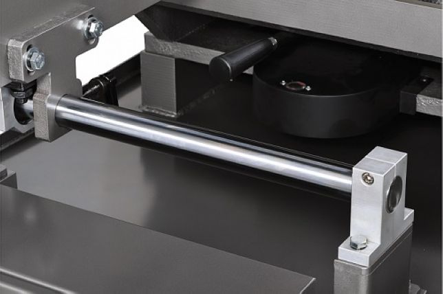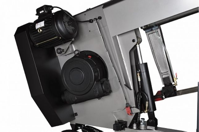 Ленточнопильный станок оснащен экономичным электродвигателем большой мощности - 5,6 кВт, приводящий шкивы в движение путем взаимодействия редуктора и ременной передачи. Модель MBS-2128DAS позволяет выполнять работу на разных скоростях движения ленточного полотна в диапазоне 17-71 м/мин. Изменение скорости движения полотна осуществляется вариатором, имеющим ручку-регулятор на панели управления.