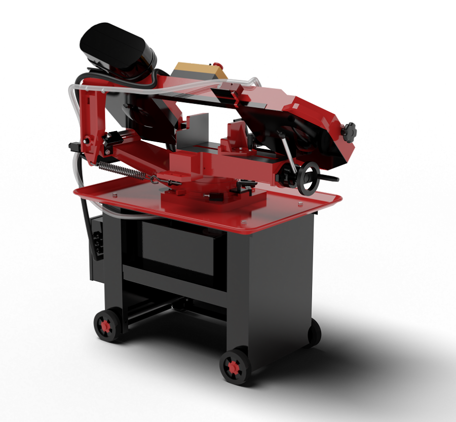 В зону распила подается полотно высотой 20 мм и толщиной 0,9 мм. На надежной пильной консоли установлены привод главного движения, направляющие ленточнопильного полотна, датчики автоматики, форсунки системы охлаждения, щетка для удаления стружки, система подачи СОЖ, пульт управления.