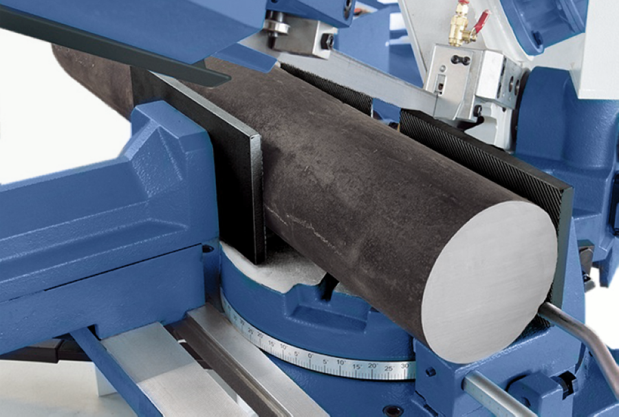 Точность резки на станке достигается за счет перпендикулярно установленного ленточнопильного полотна, которое надежно поддерживается шариковыми подшипниками с увеличенным сроком эксплуатации (встроены в направляющие на пильной раме).