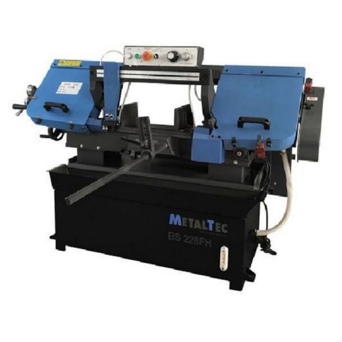 Ленточнопильный станок по металлу MetalTec BS 228FH - предназначен для резки заготовок из металлов: цветных, никелевых, титановых, а также высоколегированных и конструкционных сталей. Конструктивное устройство ленточнопильных станков по металлу сходно: в качестве базы используется массивная станина, а в качестве режущего модуля – пильная рама. Непосредственно процесс резки осуществляется пильным полотном (ленточная пила), которая сварена в кольцо и установлена на пильной раме, методом натяжения на шкивы. Пильная рама опускается под собственным весом, а регулируемый гидравлический цилиндр (гидроразгрузка), позволяет регулировать скорость опускания пильной рамы, в зависимости от установленной заготовки и режимов пиления.