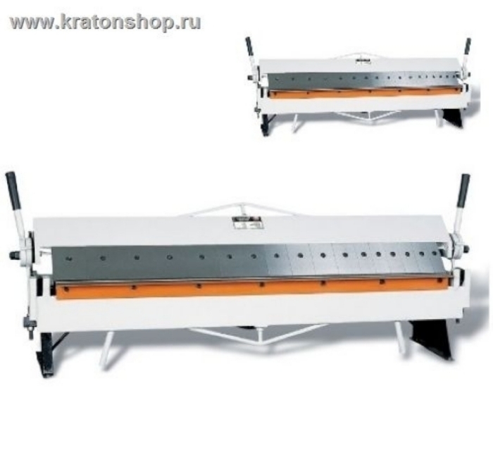 Ручной листогибочный станок Proma ROP-15/1260 - предназначен для гибки листового металла под определенным углом, задаваемым оператором, угол загибания варьируется от 0 до 135 градусов листового металла максимальной толщиной до 1,5 мм и максимальной длиной 1260 мм. Следует отметить, что длина заготовки 1260 мм является самой максимальной в сегменте ручных листогибочных станков. Для удобства работы имеется регулировка усилия прижима листа верхней матрицы, регулировкой радиуса изгиба, угла изгиба. Станок используется для изготовления различных элементов кровли, отливов, откосов, различных декоративных изделий, кроме этого с помощью станка легко изготовить различные короба, фасонные изделия. Жесткая конструкция станка обеспечивает точность размеров изделия