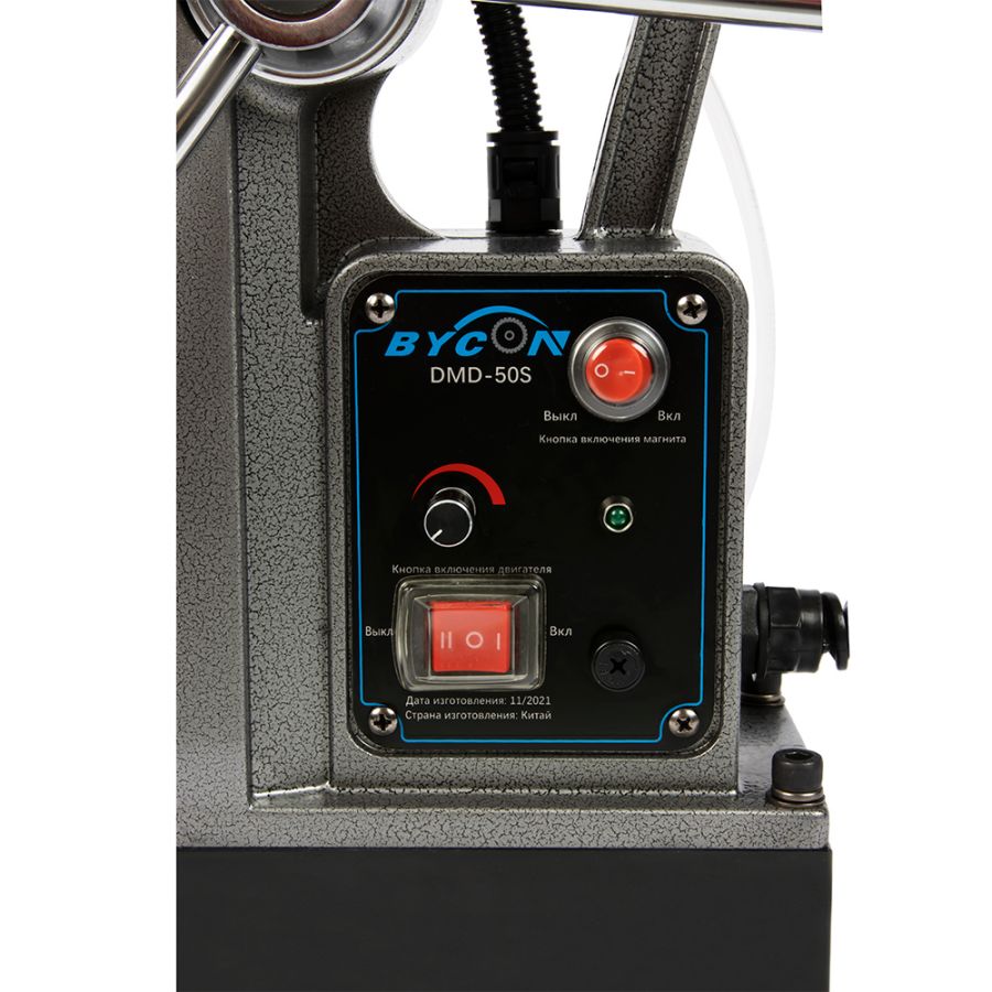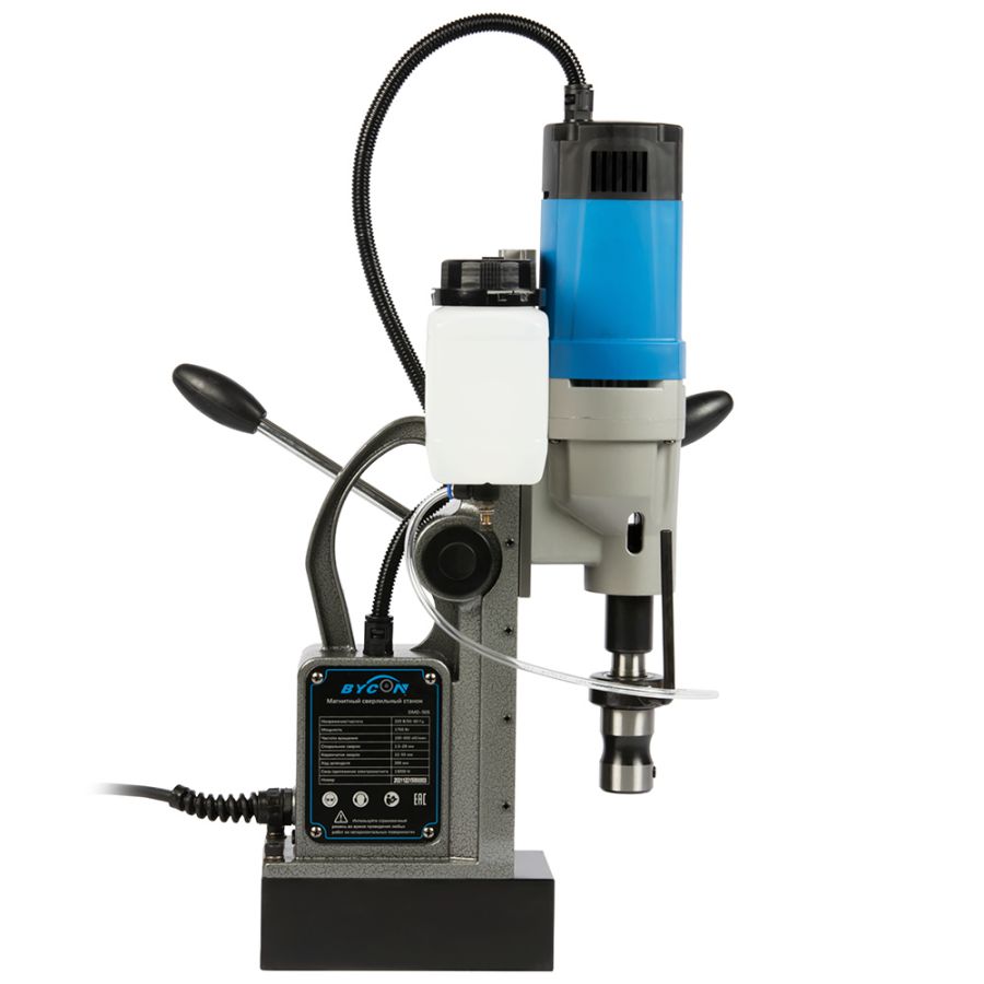 Магнитный сверлильный станок Bycon DMD-50S является оптимальным решением для сверления отверстий в металле корончатыми сверлами (кольцевыми фрезами) диаметром до 55 мм. и длиной рабочей части 35 мм., 55 мм. и 110 мм. и спиральными сверлами с к/х диаметром до 28 мм. Сверлильный станок мощностью 1700 Вт со шпинделем оснащен магнитной подошвой. Имеется функция реверса (вращение шпинделя в обратную сторону). В комплекте сверлильный патрон до 28 мм и страховочный ремень, на случай если при сверлении на высоте произойдет обрыв цепи питания и магнитная подошва деактивируется.Это устройство на магнитной подошве работает почти как настольный станок.