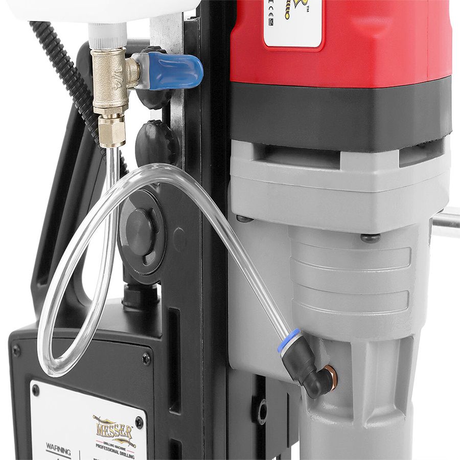 В магнитном сверлильном станке MESSER MDMR-50 использовано минимально количество электронных узлов. Система подачи смазочно-охлаждающей жидкости (СОЖ) в зону сверления позволяет уверенно выполнять работу без перегрузки двигателя и перегрева кольцевых фрез.