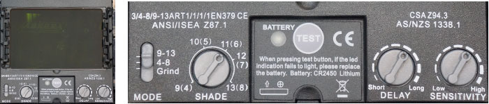 - 2 режима регулировки степени затемнённости: DIN 4-DIN 8 (для сварки на малых токах) и DIN 9 - DIN 13 (для стандартных сварочных задач),