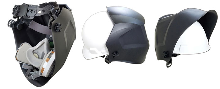 Отличительной чертой хамелеонов SUN-9 является увеличенный размер щитка, который позволяет использовать респиратор и устанавливать маску на строительную каску: