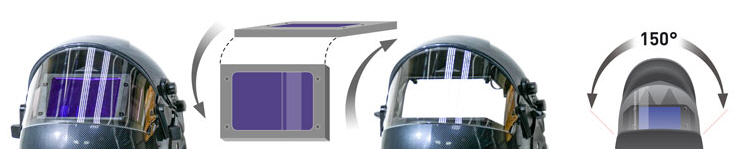 - Поднимающийся картридж светофильтра для защиты глаз и чёткой картинки в процессе подгонки и подготовки к сварке