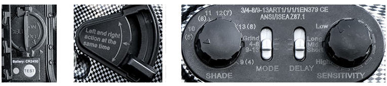 - 2 режима регулировки степени затемнения: DIN 4-DIN 8 (для сварки на малых токах) и DIN 9 - DIN 13 (для стандартных сварочных задач)