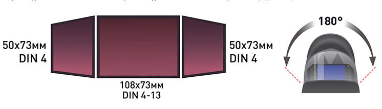 - Фрональная часть маски с регулируемой степенью затемнения 4-13DIN, боковые окна со статичным затемнением 4DIN