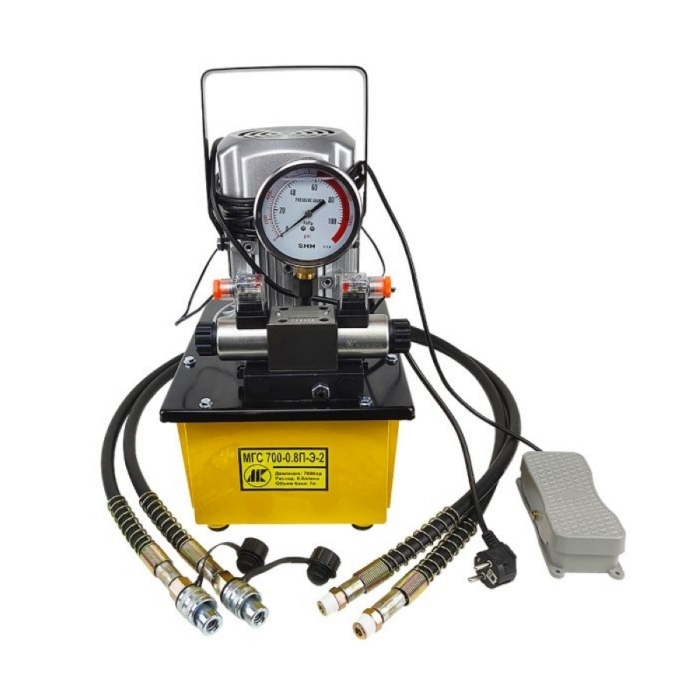 Маслостанция МГС 700-0.8П-Э-2 применяется в качестве привода для различного гидравлического переносного и стационарного оборудования: домкратов, гидравлических трубогибов, шиногибов, опрессовщиков стропов, гидроцилиндров одностороннего действия, прессов и других гидравлических устройств.