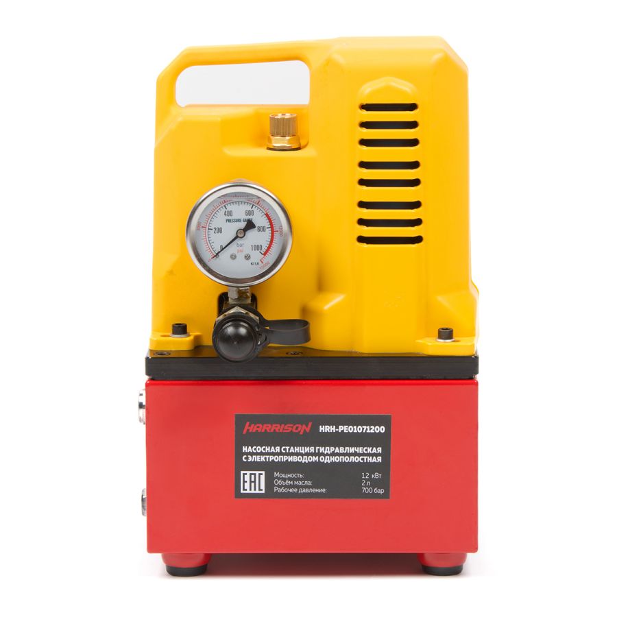 Маслостанция однопоточная Harrison HRH-PE01071200 с пультом управления и электроприводом - предназначена для создания давления и подачи гидравлической жидкости.Она легкая и удобная для транспортировки Двухскоростная система уменьшает время циклов для увеличения производительности. Все клапаны имеют 3 положения для выдвижения-удержания-втягивания. Все насосы оснащены манометром давления, который сводит к минимуму риск перегрузки и обеспечивает длительную и надежную работу. Внутренний клапан сброса давления предотвращает перегрузку. Насос комплектуется 1,5 м. рукавом высокого давления. Быстросъемные соединения оснащены пылезащитными колпачками.
