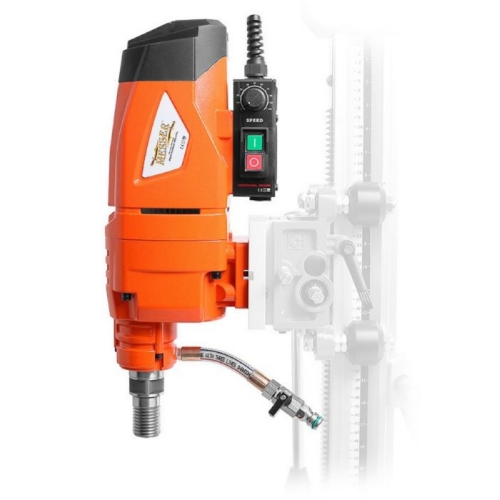 Мотор алмазного сверления MESSER DDM-180 агрегат способен эффективно работать с алмазными коронками диаметром до 182 мм. Особенностью является система плавной регулировки оборотов. Традиционно имеет универсальный шпиндель под коронки с хвостовиками 1 1/4 дюйма, систему защиты от поражения электрическим током PRCD, плавный пуск и защиту двигателя от перегрузок. Корпус двигателя изготовлен из металла.