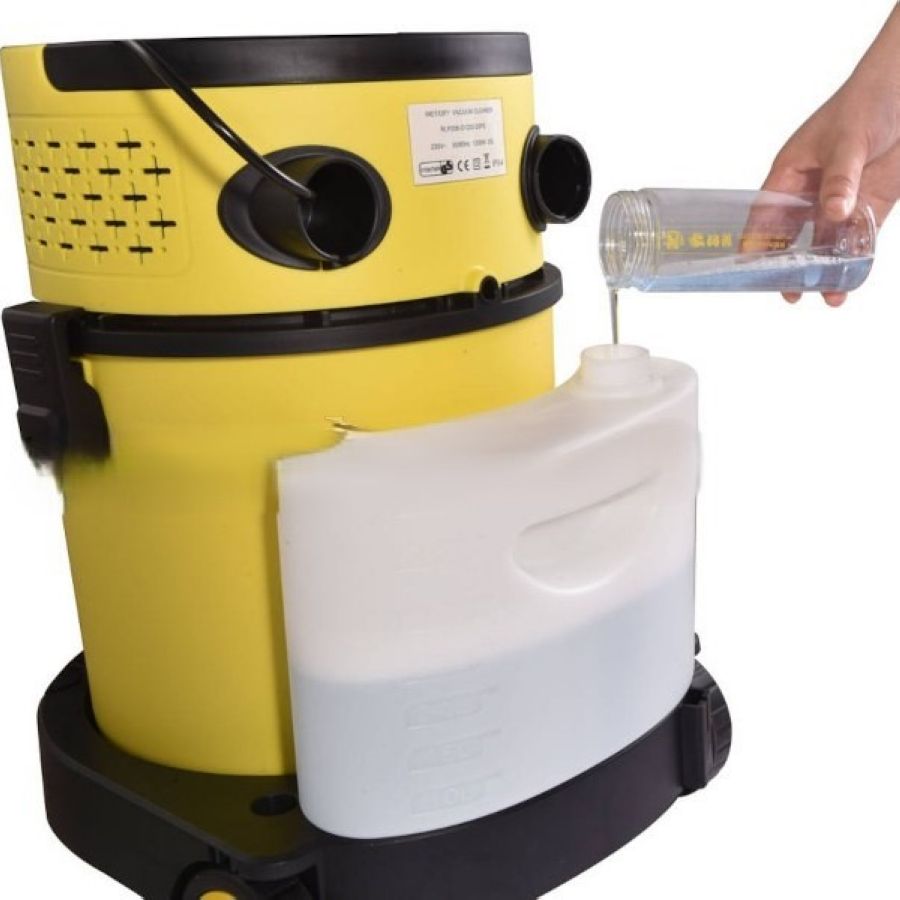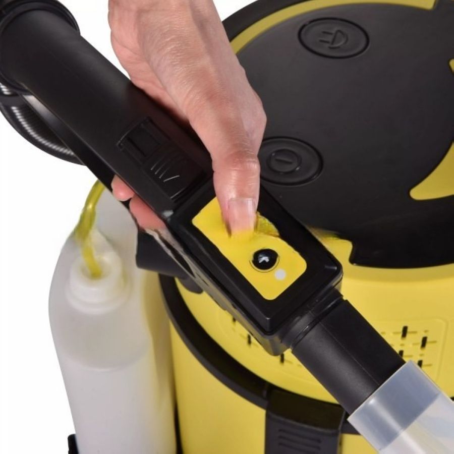 Пылесос оснащён высокоэффективным мотором мощностью 1200 Вт, а также встроенной помпой, подающей моющее средство под давлением 3 бар. Прочный корпус изготовлен из устойчивого к ударам пластика, способного выдерживать интенсивную эксплуатацию.