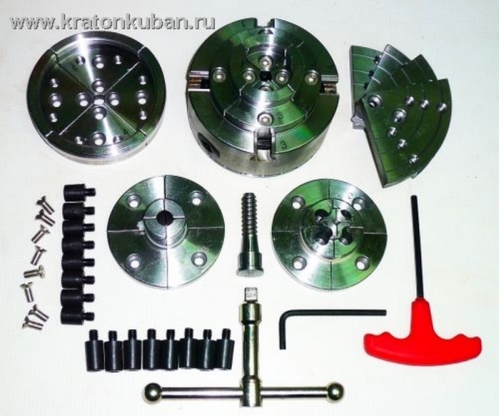Набор патронов 95 мм для токарного станка Комплектация: 95 мм конический патрон (1шт патрон с захватом, 1шт шуруп, 1шт конического зубчатого колеса гаечный ключ, 1шт 3мм Т-образный гаечный ключ , 1 ПК 3/4 "-16 план шайба) | |