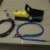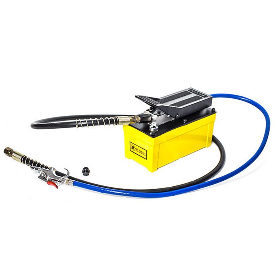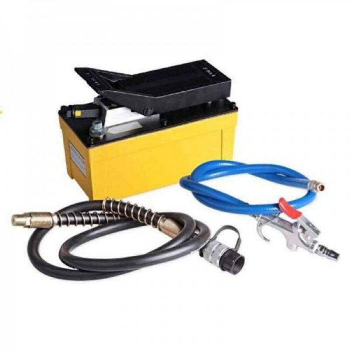 Насос гидравлический с пневмоприводом МПГ700-0.6-Р-1 (700 бар, 0.15-0.9 л/мин, бак 0.7л, РВД 1.5м), ножное управление - применяется в качестве привода для различного гидравлического оборудования с пружинным возвратом штока, например, съемники, выпрессовщики, домкраты.