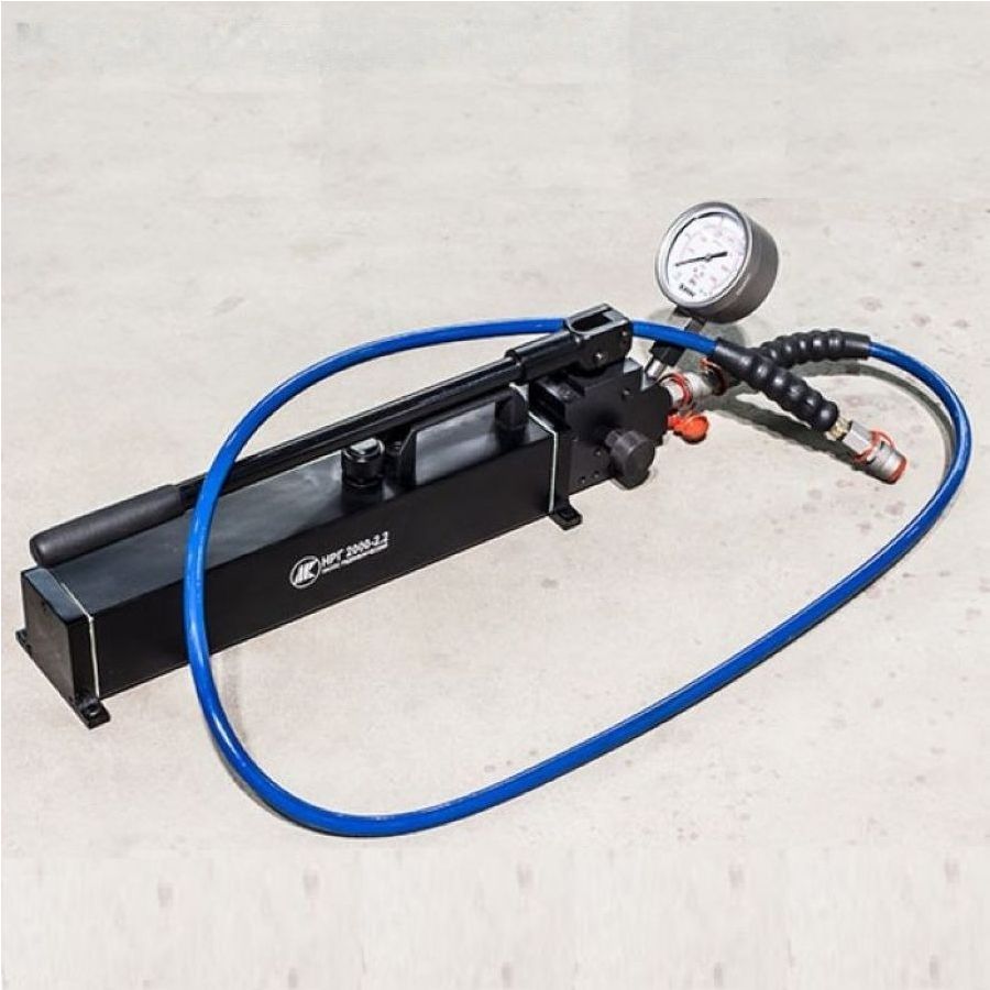 Насос ручной гидравлический НРГ 2000-2.2 (2000бар, 2.2л) - применяется в качестве привода для тензорных домкратов (шпильконатяжителей), для проведения гидроиспытыний, для безопасного демонтажа крупногабаритных деталей, посаженных на вал с натягом (гидрораспор). Насос ручной гидравлический сверхвысокого давления НРГ 2000-2.2 обладает двухступенчатой (двухскоростной) подачей для обеспечения высокой производительности на холостом ходу, то есть при выдвижении штока гидроцилиндра без нагрузки гидравлический насос имеет значительно большую производительность.