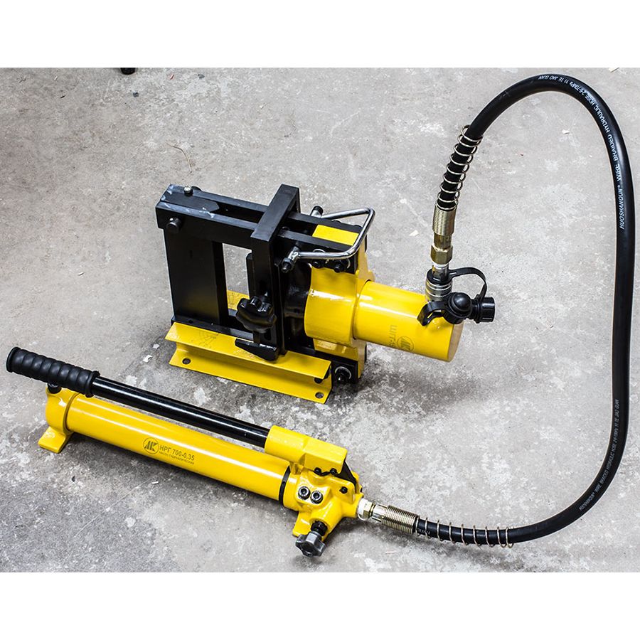 Насос гидравлический ручной НРГ 700-0.35 (700 бар, 0.35 л), предназначен как дополняющее устройство для различного гидравлического оборудования: домкратов, гидравлических трубогибов, шиногибов, опрессовщиков стропов, гидроцилиндров одностороннего действия, прессов и других гидравлических устройств. Насос ручной НРГ 700-0.35 имеет в своей конструкции двухступенчатую подачу для обеспечения высокой производительности на холостом ходу, что способствует выдвижению штока гидроцилиндра без нагрузки гидравлический насос имеет значительно большую производительность.