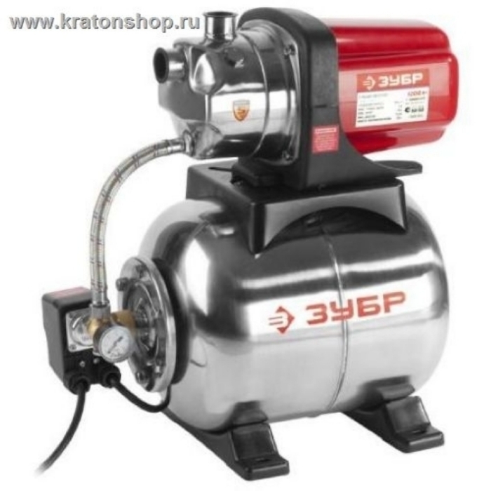 Автоматическая насосная водяная станция ЗУБР ЗНАС-1200-С - используется для поднятия воды с глубины и обеспечивает постоянное давление воды в водопроводной системе, при одновременной фильтрации частиц размером до 5 мм. Атмосферное давление, составляющее 4 атмосферы и мощность 1200 Вт позволяет насосной станции откачивать воду с глубины до 4 метров и выдавать максимальный напор до 50 метров. Корпус насоса и бака выполнен из нержавеющей стали, а обмотка электродвигателя выполнена из медной проволоки. Отличительной особенностью станции является ее высокая производительность равная 63 л/м, а также емкость гидроаккумулятора 20 л. Данная станция устанавливается вне воды.