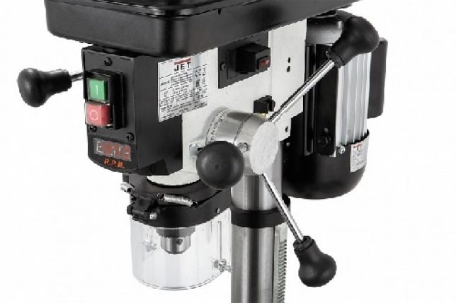 Настольный сверлильный станок Jet JWDP-10 - это станок с вариатором для работы в небольших мастерских с деревом, металлом и другими материалами. Его конструкция базируется на узлах и деталях профессиональной модели JWDP-12, но имеет ряд отличий: уменьшены общие размеры, изменено устройство стола, использован ключевой патрон и т.п. Эти меры позволили снизить стоимость при сохранении основных достоинств: частота вращения шпинделя меняется простым перемещением рычага управления, установленная скорость отображается на цифровом дисплее, штатная комплектация включает в себя лазерный указатель оси сверления, рабочий стол имеет Т-образные пазы для крепления тисков и прихватов, предусмотрена работа от основания.