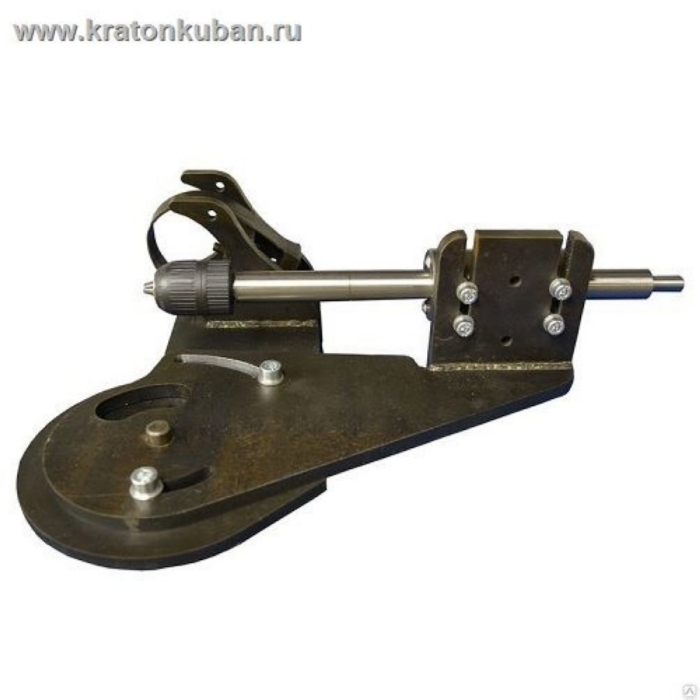 DT-80 крепится к любому верстаку и имеет хвостовик для присоединения электродрели с одной стороны, а также трехкулачковый патрон для режущего инструмента