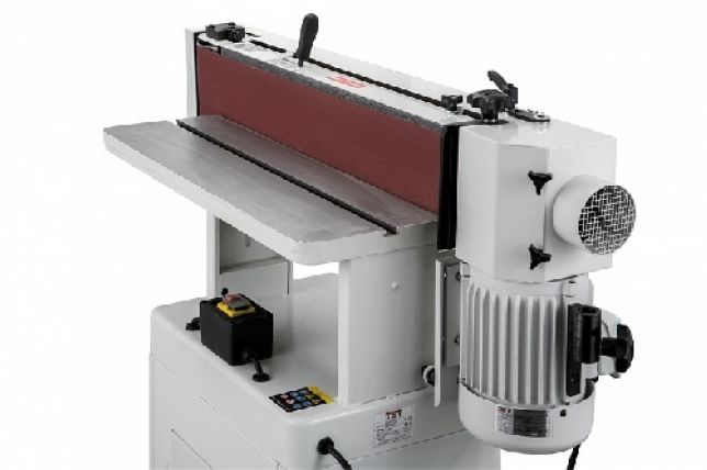Модель оснащена вспомогательным механизмом, который за счет поворота узла переднего натяжного ролика обеспечивает колебания ленты в направлении перпендикулярном основному движению. Осцилляция способствует более эффективной работе абразива и повышает производительность станка.