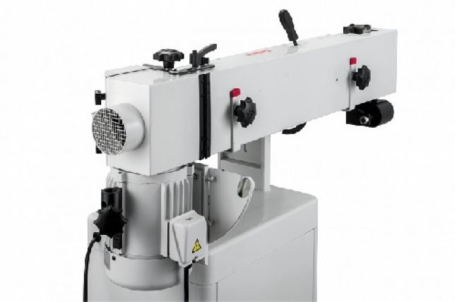 Ленточный узел станка выполнен поворотным вокруг продольной оси, его можно установить вертикально, горизонтально или под любым промежуточным углом, фиксация выбранного положения производится эксцентриковой рукояткой без использования инструмента. Основной рабочий стол, сделанный из литого чугуна, регулируется по высоте, что позволяет выровнять его поверхность с плоскостью ленты при её горизонтальном положении или использовать ресурс всей её ширины при эксплуатации в вертикальном. Для фиксации заготовки предусмотрены длинный «параллельный» упор с фиксацией в Т-образном пазу и подвижный угловой.