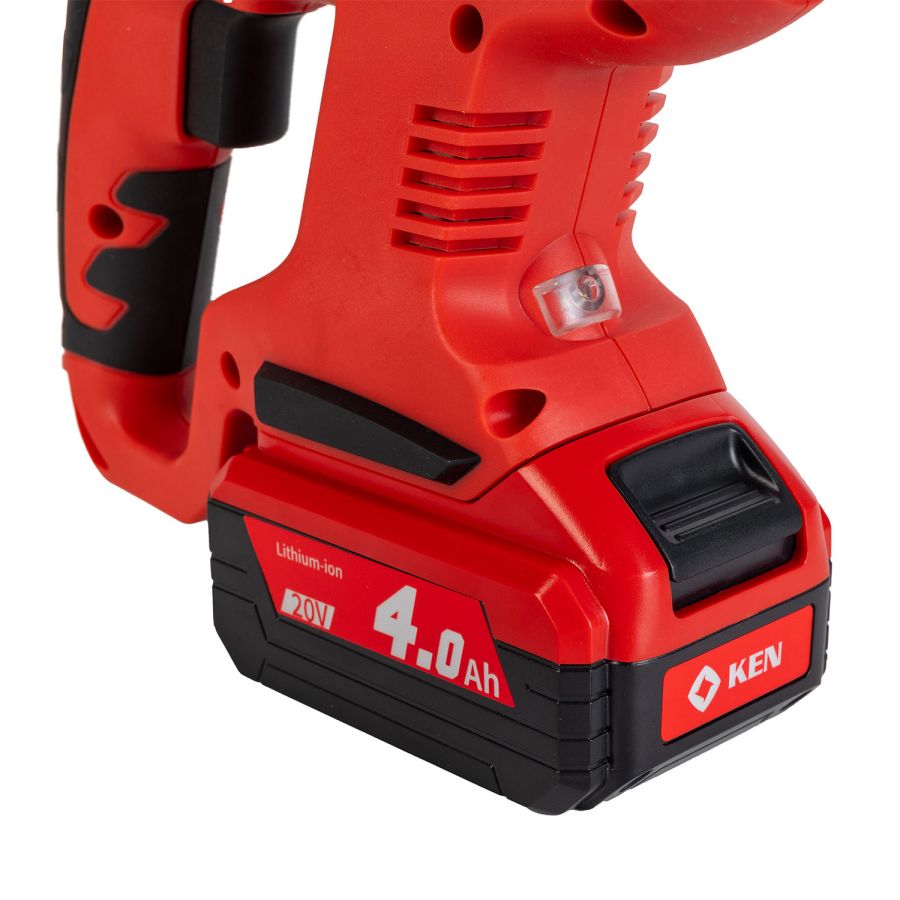 Перфоратор KEN BL2120-40C — мощный и мобильный инструмент, рассчитанный на профессиональное использование. Оснащён регулировкой оборотов в диапазоне 0–1400 об/мин и способен выполнять сверление диаметром от 3 до 22 мм. Работает от аккумулятора 20 В ёмкостью 4,0 А*ч, что обеспечивает продолжительную автономную работу.