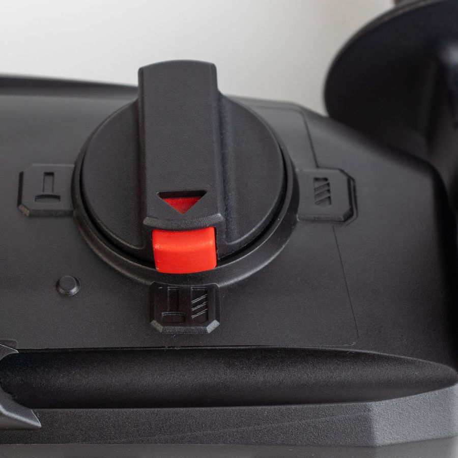Инструмент оснащён быстрозажимным патроном SDS-plus для быстрой смены оснастки и электронным регулятором скорости, позволяющим точно подобрать режим работы. Безопасная муфта защищает пользователя и механизм от перегрузок.