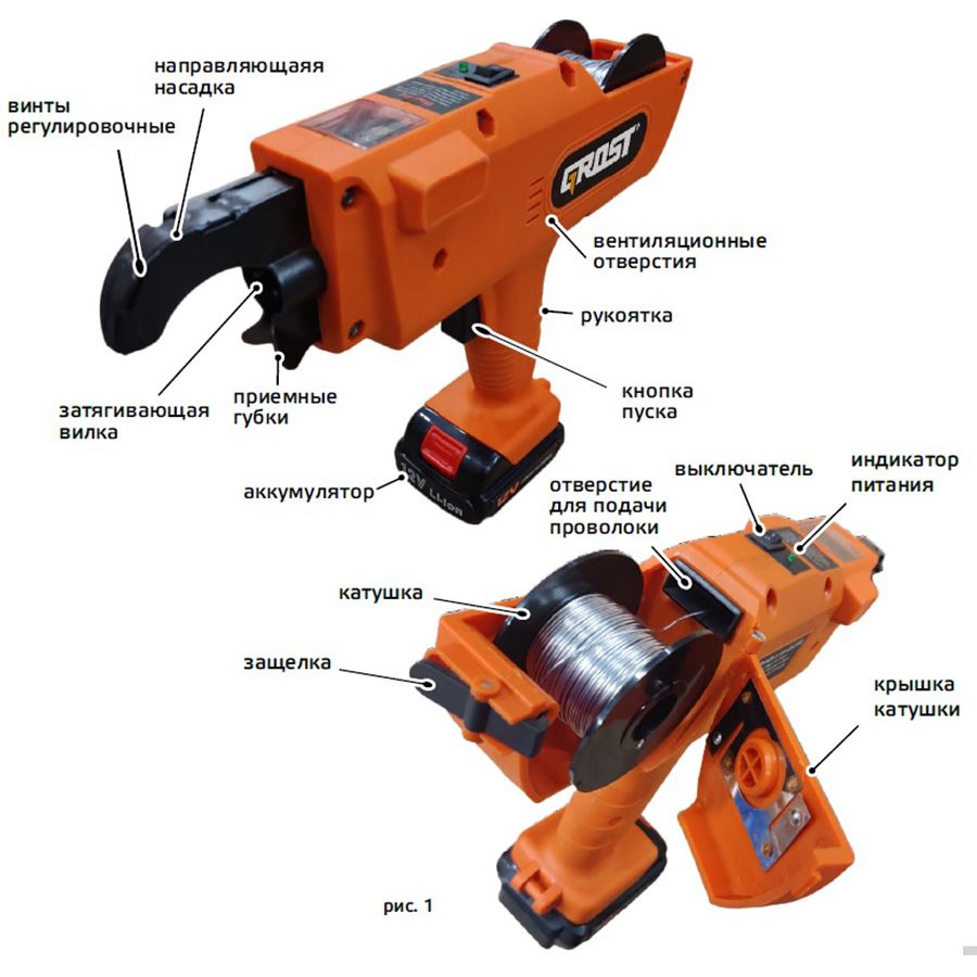Пистолет для вязки арматуры Grost RT508 этот пистолет отрегулирован на заводе по оптимальной длине и силе затяжке, что значительно упрощает его эксплуатацию, а также предотвращает ошибки при регулировании параметров.