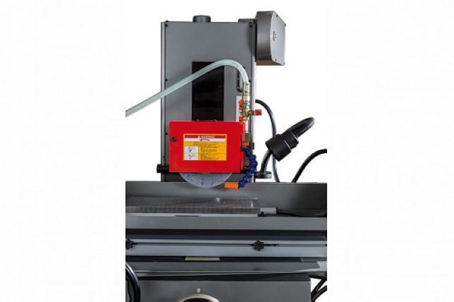 Частота вращения шпинделя у этой модели - 2850 об/мин, имеется механизм его быстрого подъема. Предусмотрена автоматическая система смазки основных узлов и агрегатов, включая направляющие, а также подвод СОЖ в зону шлифовки. Во время шлифовки дисплей блока управления индицирует положение по оси Y, показывающее действительное положение шпинделя, также выводятся параметры начала отсчета, величины чернового шлифования, начальной точки чистового шлифования, заданная координата, точка подъема, периодичность выхаживания и т.п.