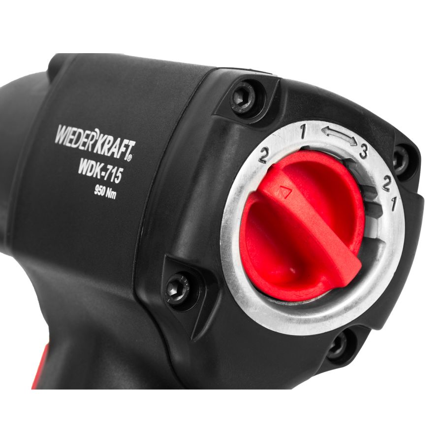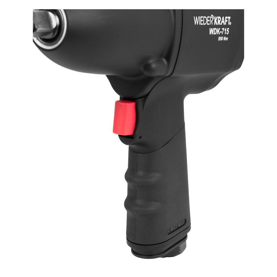Пневматический гайковерт Wieder Kraft WDK-715 - лекгий и мощный инструмент из композитного материала с резиновым покрытием рукояти.Уникальное сочетание легкости, мощности, низкого уровня шума и скорости вращения, ударный механизм.