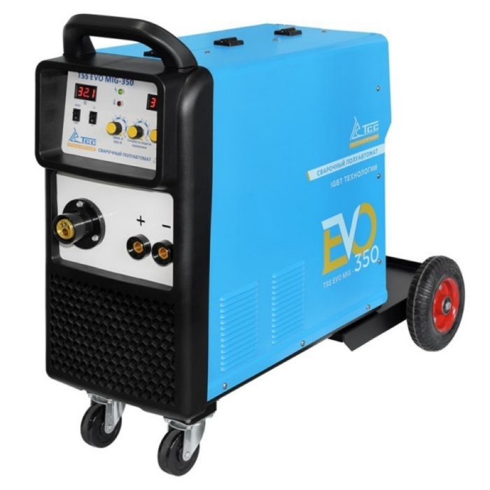 Полуавтомат сварочный ТСС EVO MIG-350- разработан специально для полуавтоматической сварки в среде защитного газа (MIG/MAG), сварки порошковой проволокой (FCAW) и ручной дуговой сварки (ММА).Этот сварочный полуавтомат инверторного типа. Корпус из листовой стали, надежно защищает внутренние элементы от повреждения. Предназначен для полуавтоматической сварки в среде защитных газов (MIG/MAG), а также ручной дуговой сварки покрытым электродом (ММА). Аппарат имеет защиту от перегрузки, индикатор перегрева и неисправности, обеспечивая высокий уровень безопасности и надежность устройства. Так же данный аппарат имеет защиту от скачков напряжения. Высокое напряжение холостого хода обеспечивает легкость поджига сварочной дуги. Высокая стабильность сварки в реальном времени, простое интуитивно понятное управление сварочными параметрами.