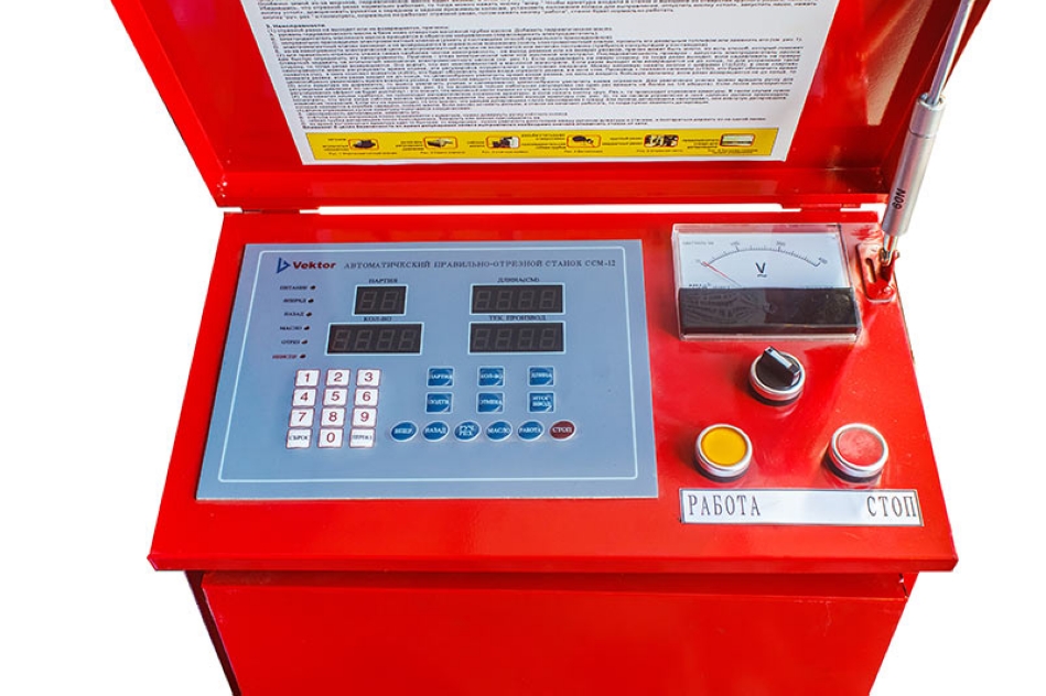 Правильно-отрезной станок ССМ-12B используется для выпрямления и резки прутков и арматруры необходимого размера. Высокая степень автоматизации и скорость протяжки арматуры позволяет легко и быстро получать прямые прутки необходимой длины. После правки прочность материала не утрачивается.