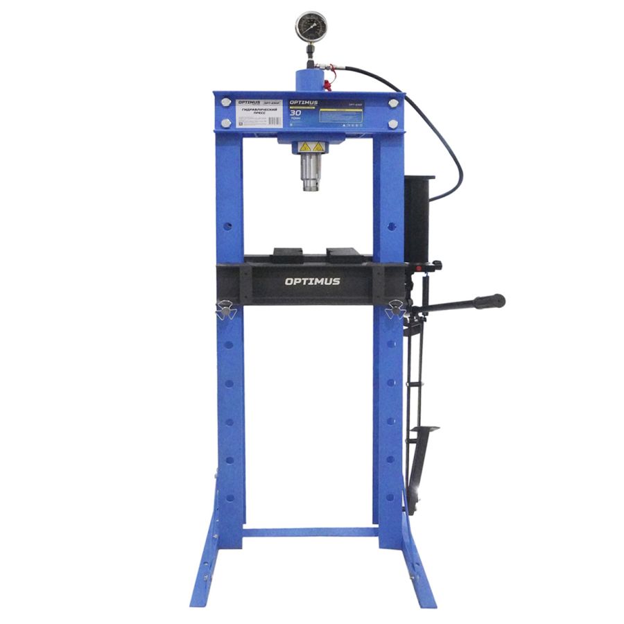 Пресс гаражный Optimus OPT-230F, 30т - напольный гидравлический пресс с оснащен ручным и ножным приводом, используется в автосервисах, СТО и производстве для запрессовки деталей различных размеров, выпрессовки втулок, снятия и установки подшипников, гибки металла. Цилиндр имеет возможность горизонтального перемещения для работы по всей плоскости стола. Гидравлические компоненты повышенного качества. Жидкостный манометр защищен от гидроудара, упрощает контроль за развиваемым усилием. Регулируемый по высоте стол и автоматический возврат поршня - удобство и скорость работы.